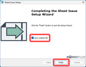 Sheet Issue will be installed to the folder C:\Program Files\MonkeyFlow\SheetIssue or \SheetIssue_BricsCAD if using BricsCAD.