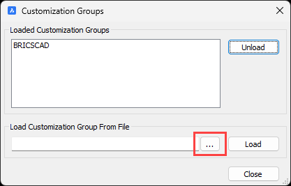11. Type MENULOAD on the BricsCAD command line to open the Customization Groups dialogue box.