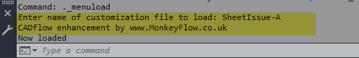 ![]() 14. The Sheet Issue ribbon tab should now be displayed. Should you also require the Sheet Issue pull-down menus to display type in MENUBAR on the command line and set it to 1.