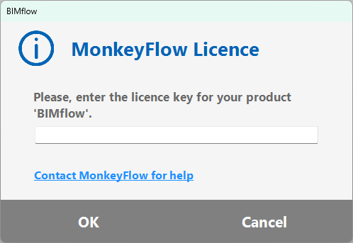 To activate BIMflow enter the activation code you have been sent and click OK.