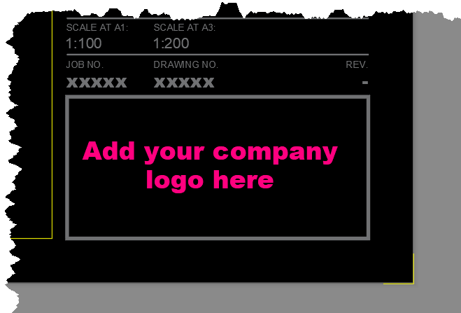 Box for adding your company logo and contact information. Simply select the title panel, right click and open Block Editor to add your information. We recommend using vector based data (not image files e.g. JPEG) so the data is embedded in the file and not linked. If however you'd prefer to use a raster image, follow these instructions to embed the image into the AutoCAD drawing Embed a Picture (Not as a Reference) | AutoCAD Tips (please note this is not possible in BricsCAD).