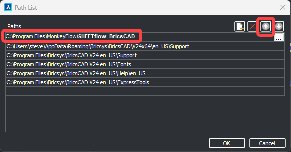 12. Click … and navigate to C:\Program Files\MonkeyFlow\SHEETflow_BricsCAD